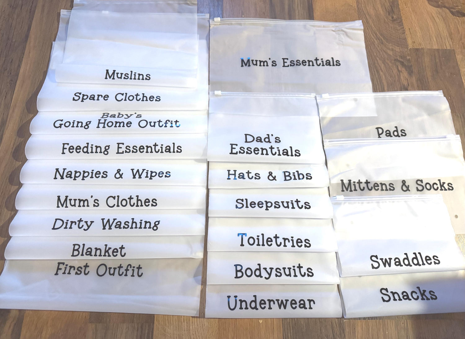 Our bestseller is our 20 piece hospital bag set - perfect for organising your bag ready for the big day.