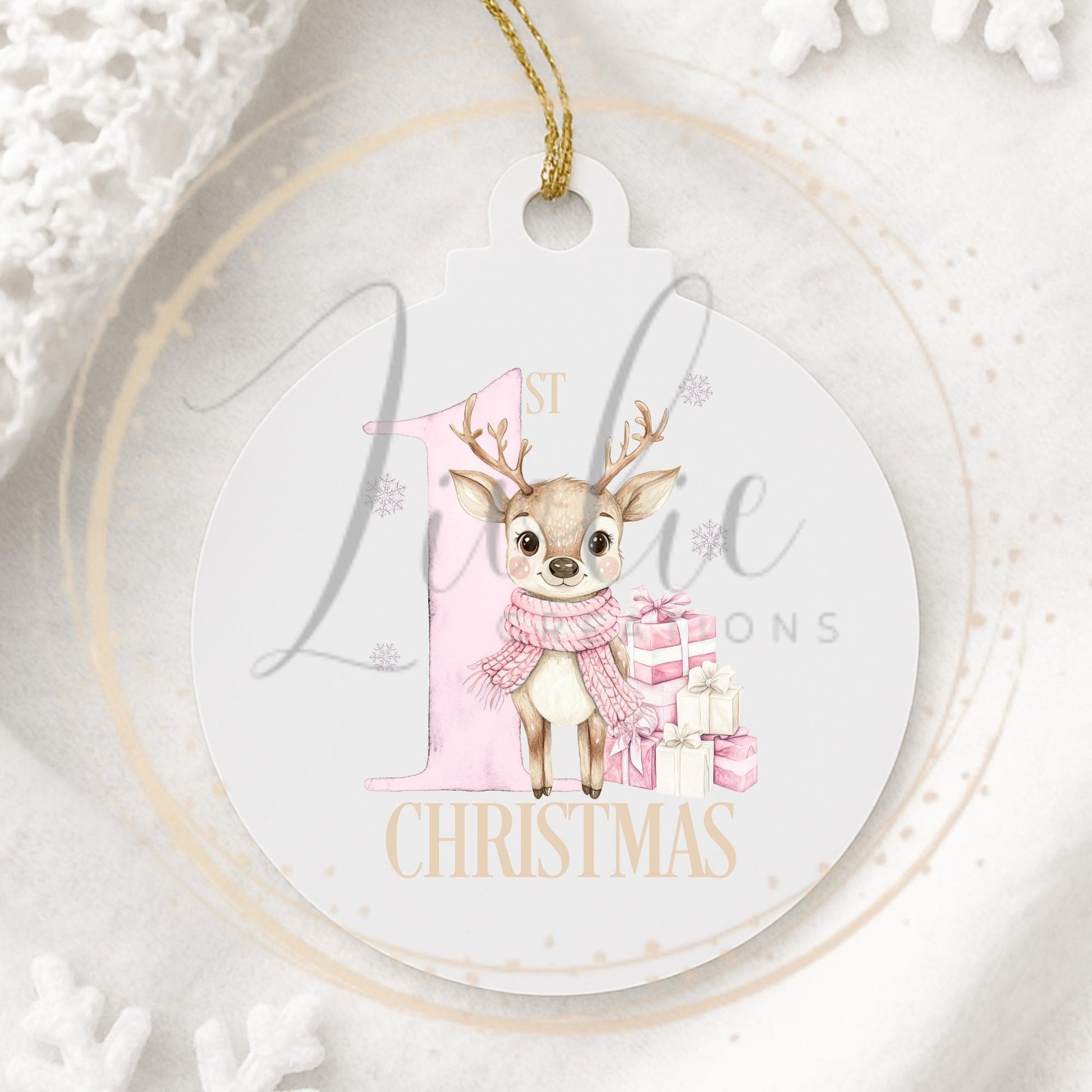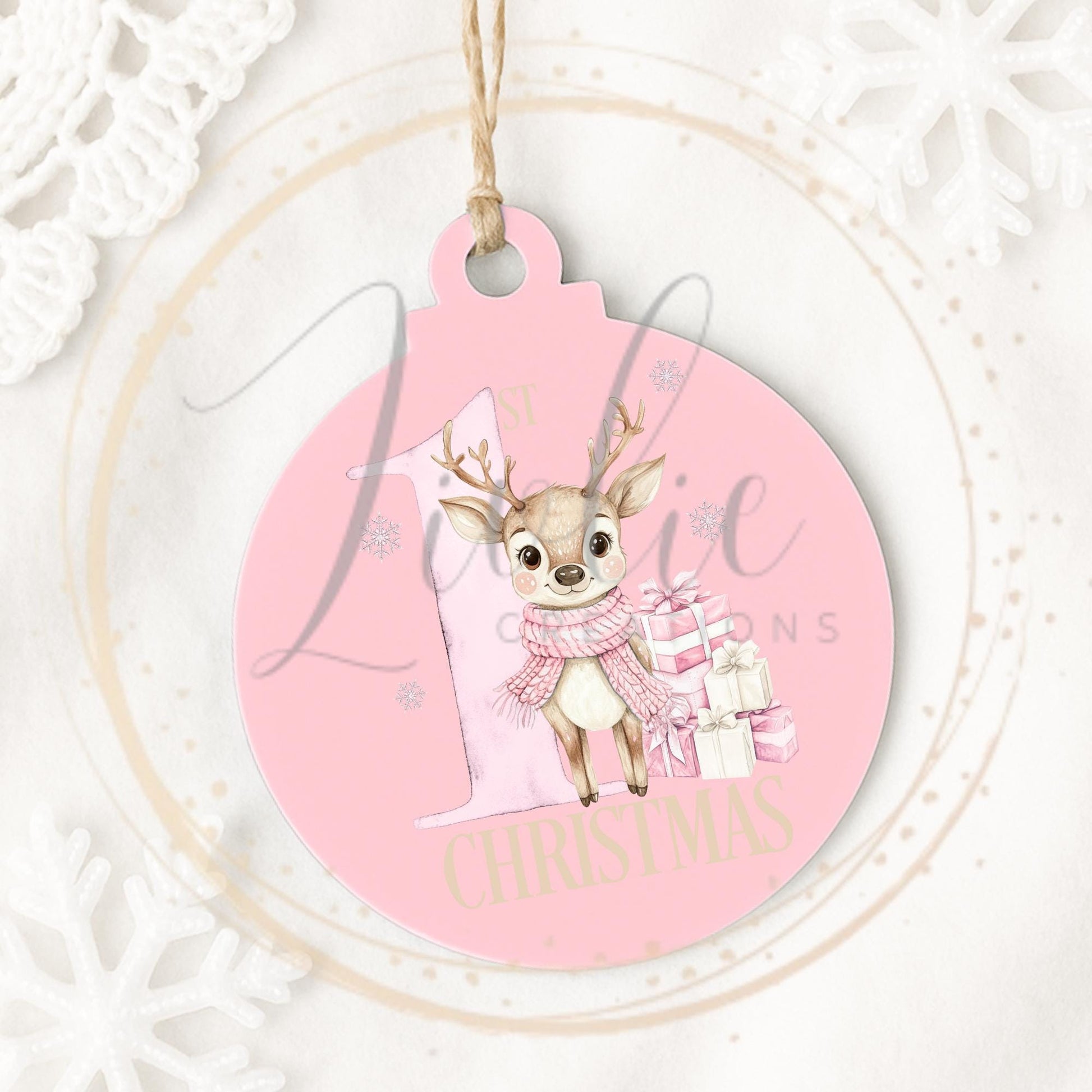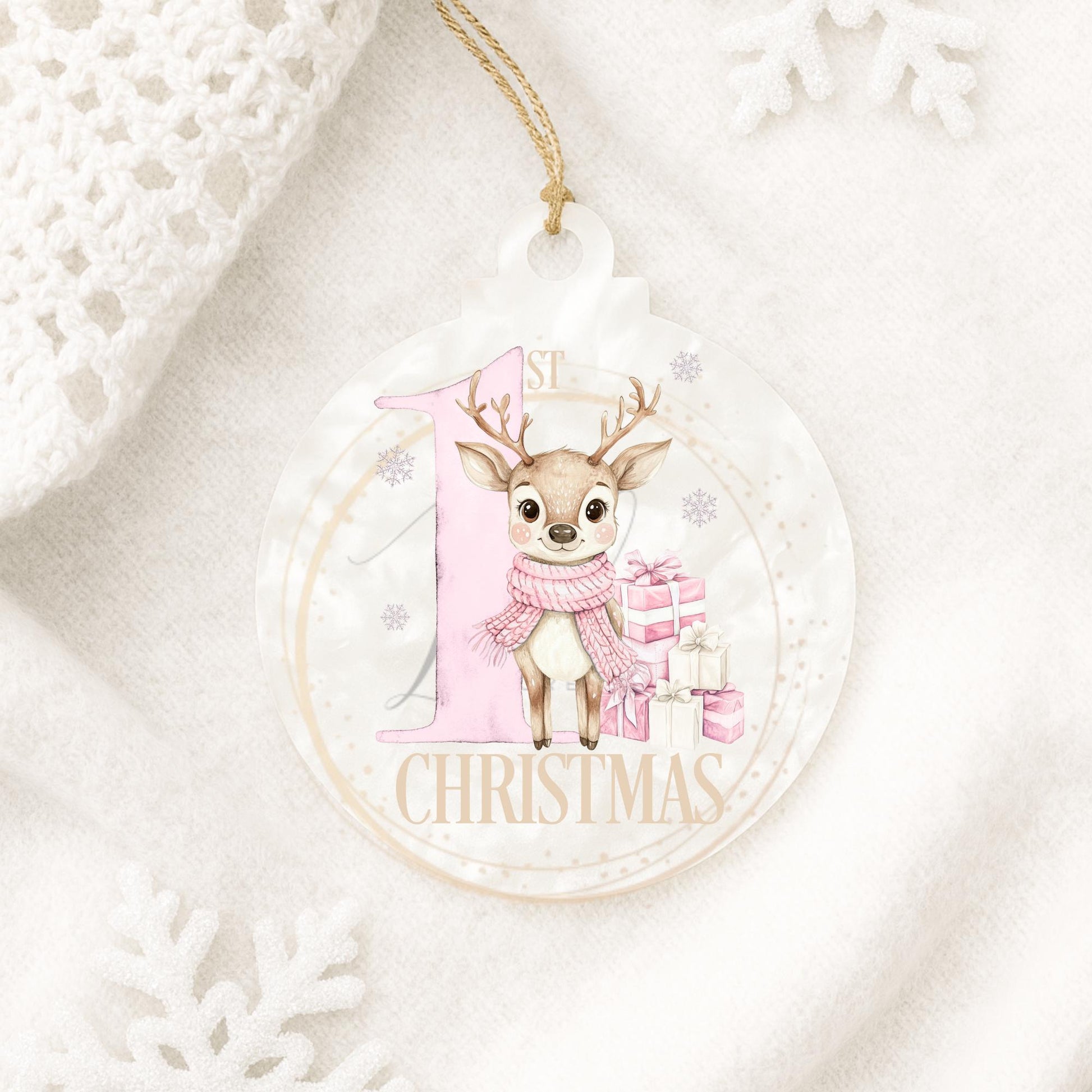 Baby's First Christmas Pink Reindeer Bauble