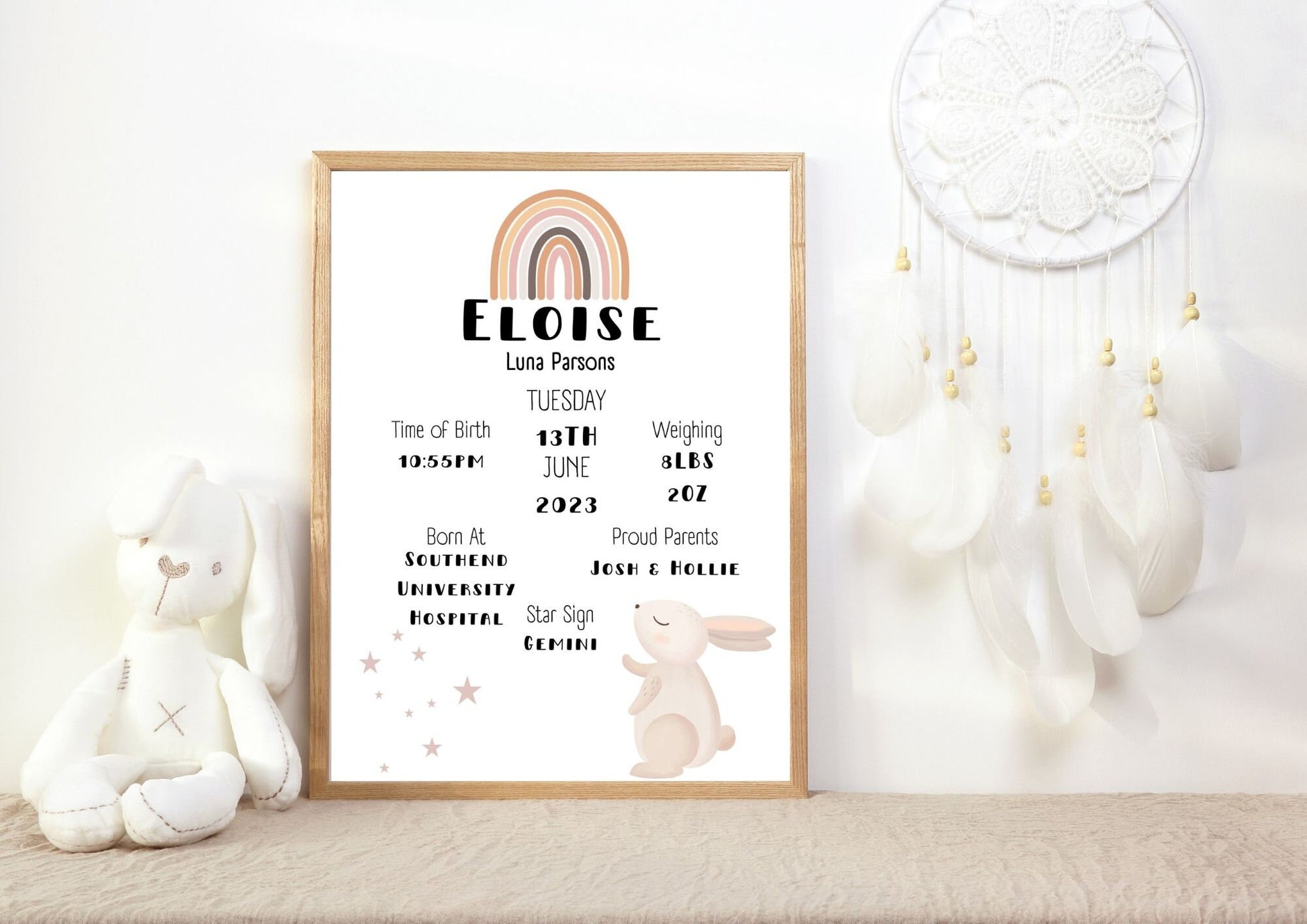 The perfect personalised gift for a baby shower, new baby, christening or just as a print for your baby's bedroom.